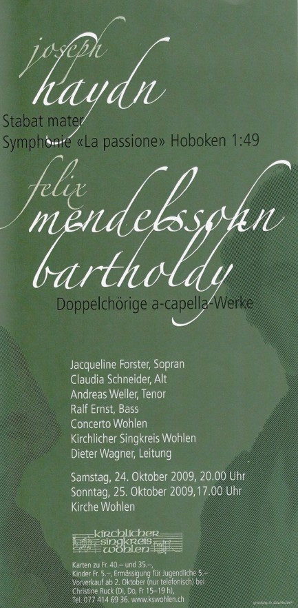 - Felix Mendelssohn Bartholdy: Stücke aus dem Oratorium «Paulus» u.a.